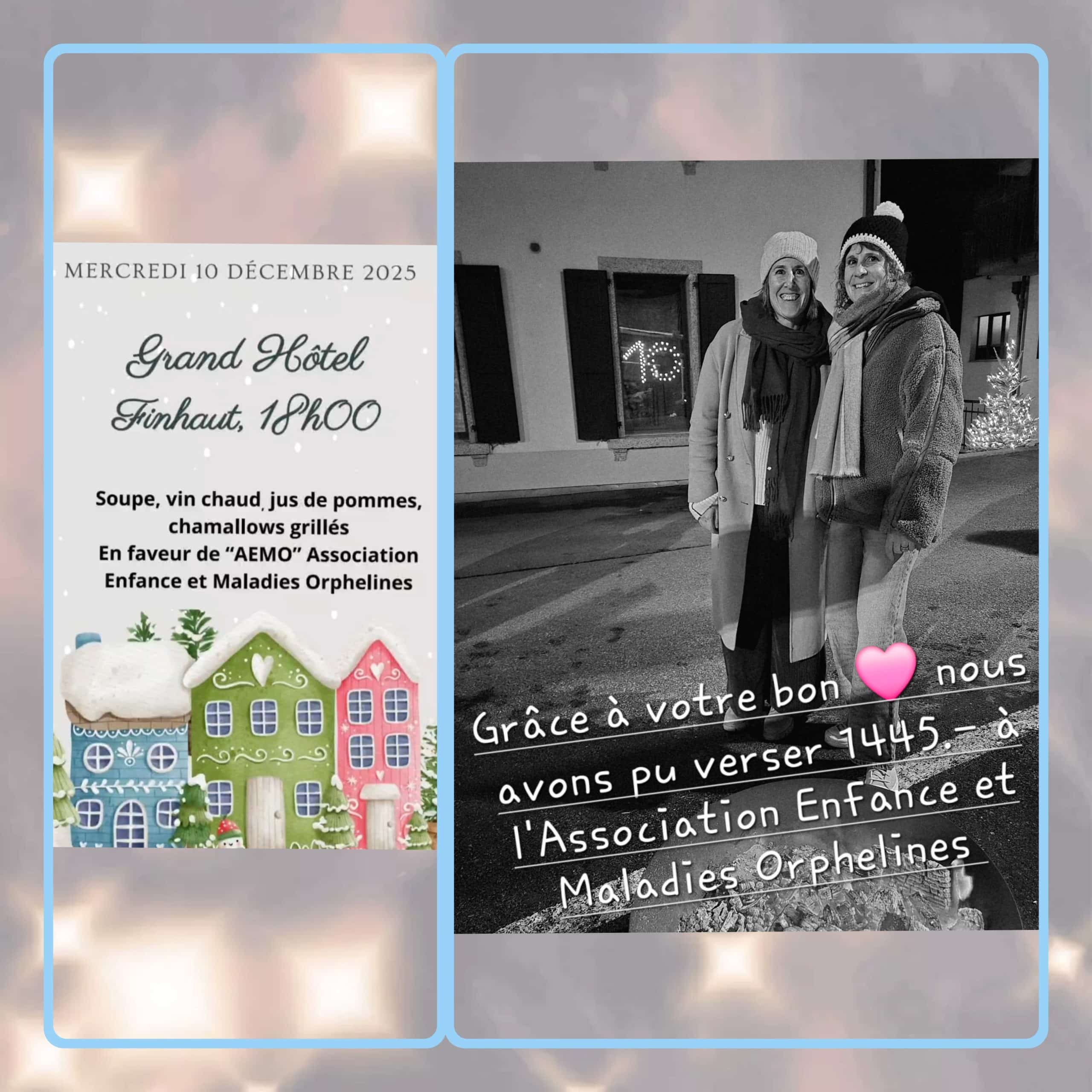 La Société de Bienfaisance et la Caecilia de Finhaut ont offert bien plus qu’une fenêtre de l’Avent en faveur d’AEMO : elles ont ouvert un espace de générosité et de cœur. Grâce à la précieuse complicité de Violaine, qui a confectionné avec passion de magnifiques sacs au crochet, vendus à la boutique MONSIEUR à Martigny, cette action solidaire a pris tout son sens.