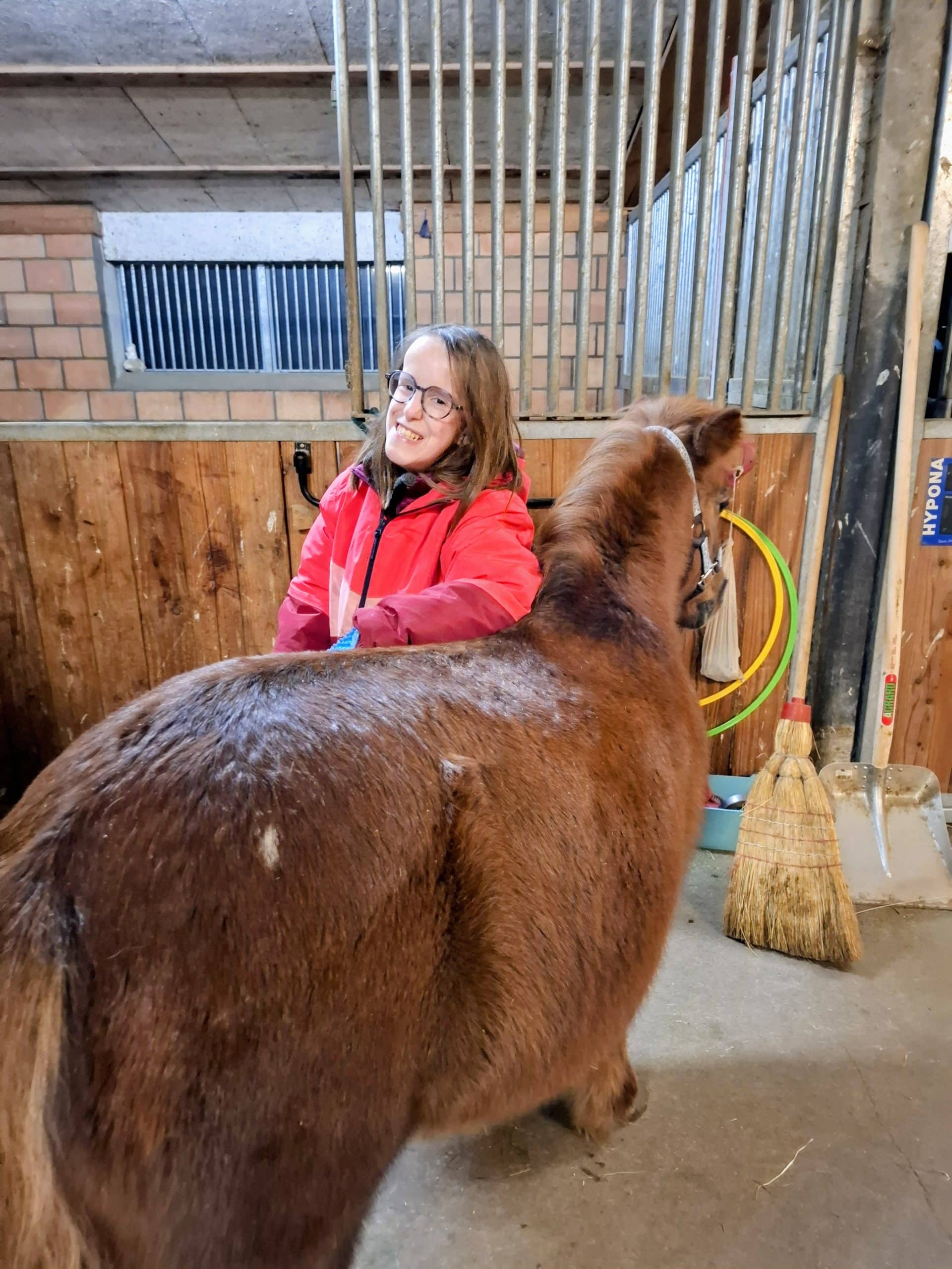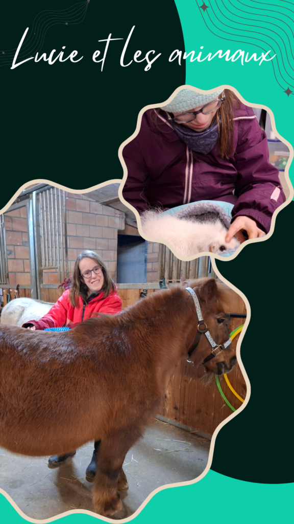 Ici, Lucie partage des moments doux et rassurants avec le lapin Maya ou le poney Havanne. À leur contact, elle prend un réel plaisir à vivre des instants privilégiés.